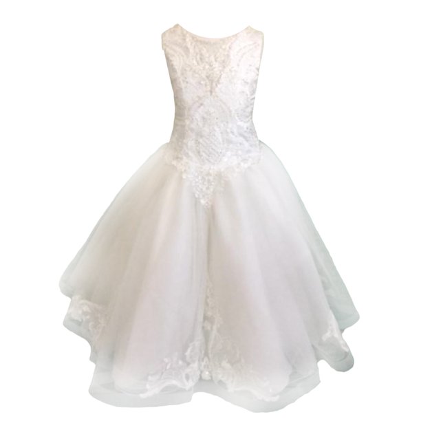 Christie Helene Christie Helene White Beaded Lace V Neck Communion Dress Big Girls Walmart Com Walmart Com